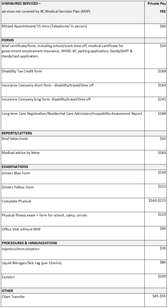 Some services are not covered by the Medical Services Plan. See services not covered by MSP.